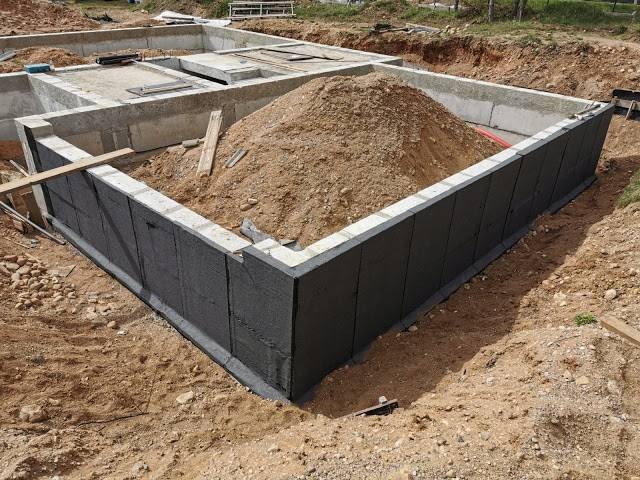 Pamatų hidroizoliavimas bitumine danga.